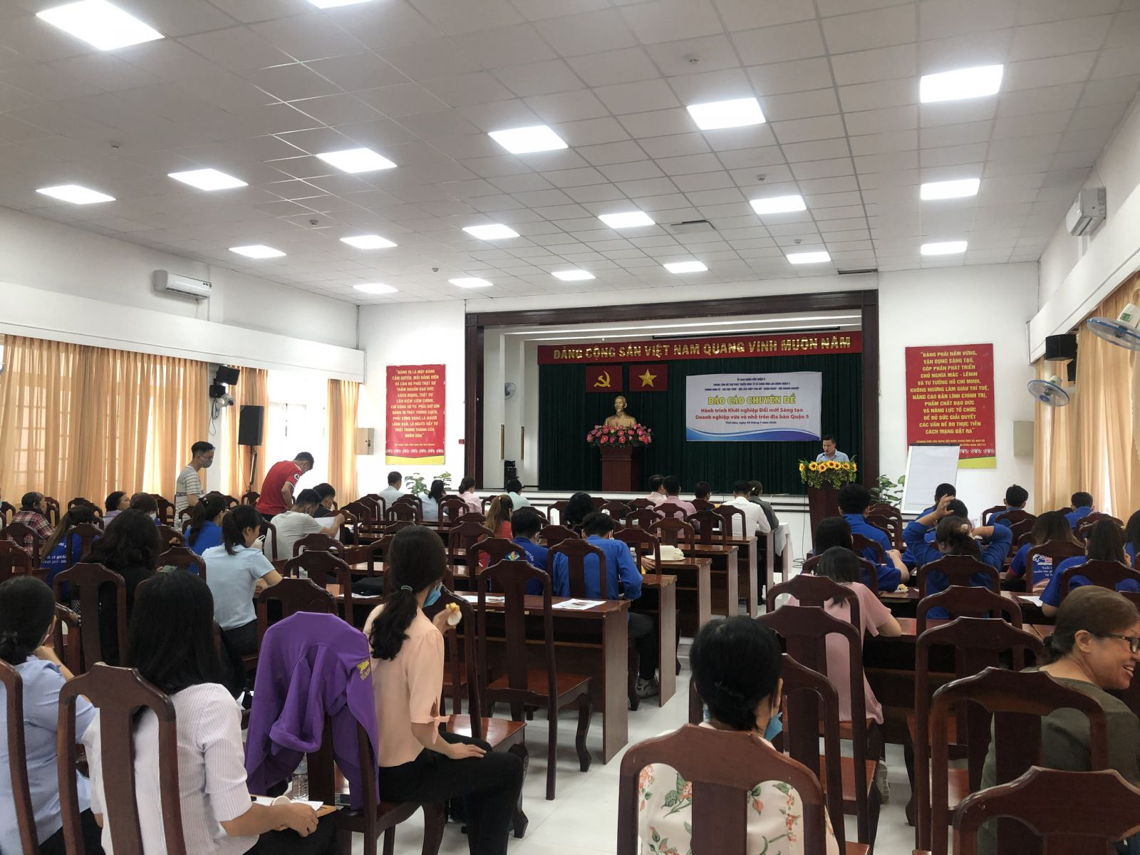 Sáng ngày 30/07/2020, Trung tâm Hỗ trợ phát triển kinh tế và Cung ứng lao động phối hợp Phòng kinh tế, Chi cục Thuế, Hội Liên hiệp Phụ nữ, Quận đoàn và Hội Doanh nghiệp Quận 5 tổ chức lớp chuyên đề "Hành trình khởi nghiệp đổi mới sáng tạo Doanh nghiệp vừa và nhỏ trên địa bàn Quận 5".
