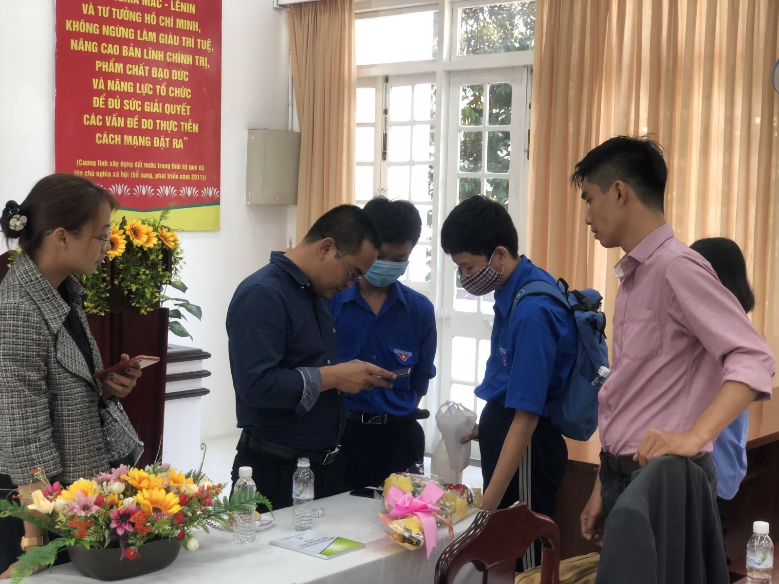 "Quang cảnh giải lao và báo cáo viên trao đổi với học viên"